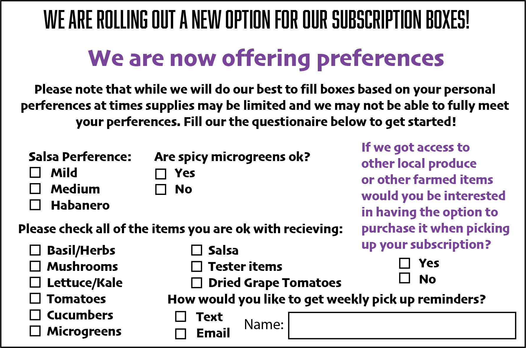 We now have sign up’s available on our website on our Online Store tab! You can also still text us to sign up or message us on facebook if you prefer to pay in person when picking up your box!